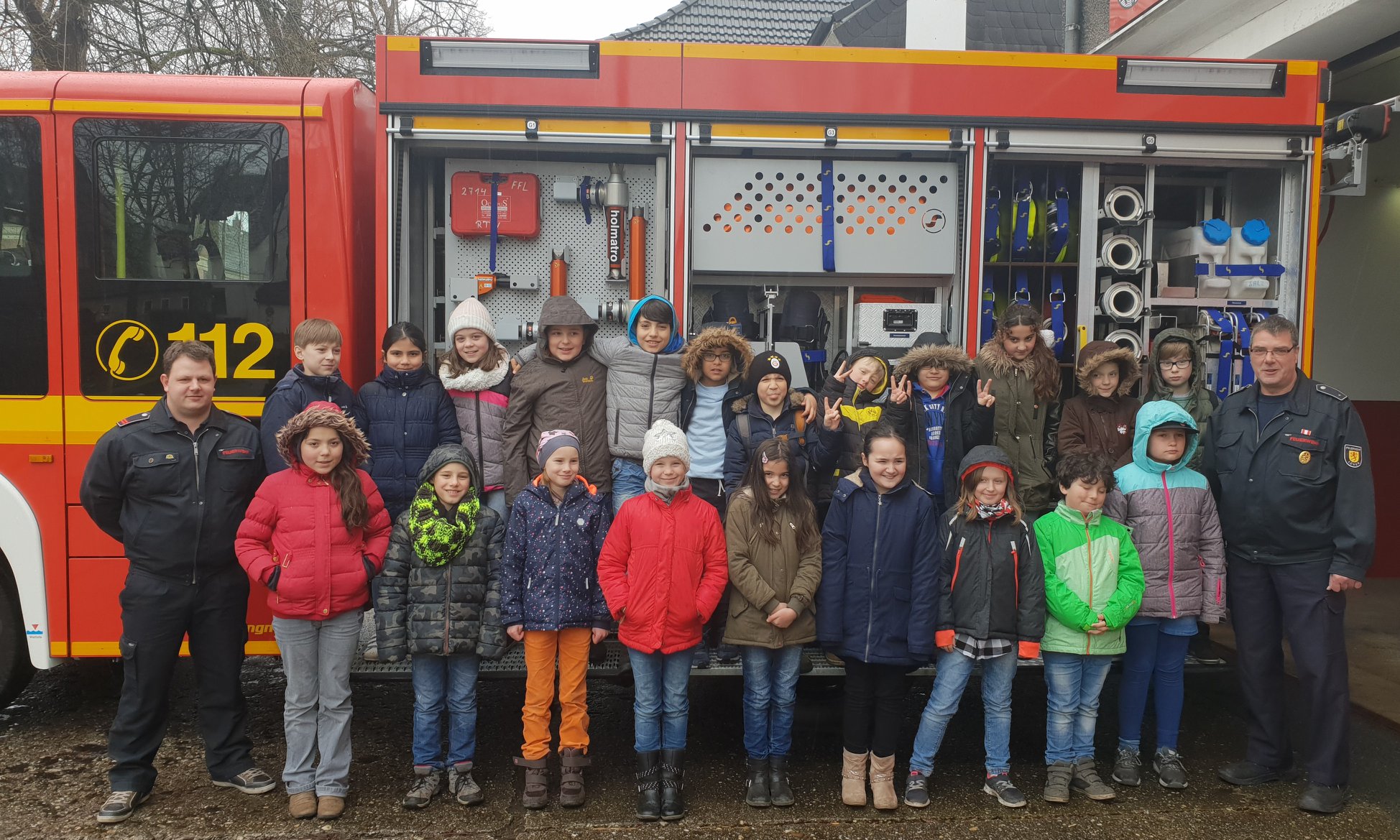 Heute waren die Klassen 3a und 3b der Elisabethschule Lünen-Brambauer zu besuch, die sich vorab im Sachunterricht mit dem Thema „Feuer und Feuerwehr“ auseinandergesetzt haben. Die Kinder wurden bei uns über die Aufgaben der Feuerwehr und das Verhalten im Brandfall aufgeklärt und durften sich im Anschluss unsere Fahrzeuge und die Ausrüstung anschauen.