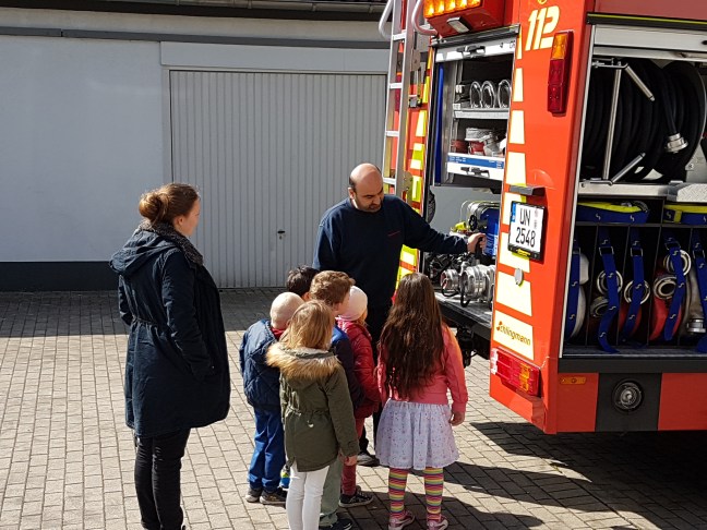 Wie jedes Jahr besuchten uns die Vorschulkinder der Kindergärten aus Brambauer. Mit großer Aufmerksamkeit hörten die Kinder auf die Worte der Brandschutzerzieher. Es wurde der Umgang mit Feuer, das Verhalten im Brandfall besprochen. Mit unserem Rauchdemohaus konnte den Kinder dargestellt werden wie sich falsches Verhalten auswirkt. Im Anschluss durften die Kinder sich die Fahrzeuge anschauen und sogar alles einmal anfassen. Viele Fragen sind gestellt worden. Das Highlight ist natürlich jedes Jahr mal selbst mit einen echten Feuerwehrschlauch zu Spritzen. Zum Schluss wurde ein Schönes Gruppenbild als Erinnerung auf der Drehleiter geschossen.
